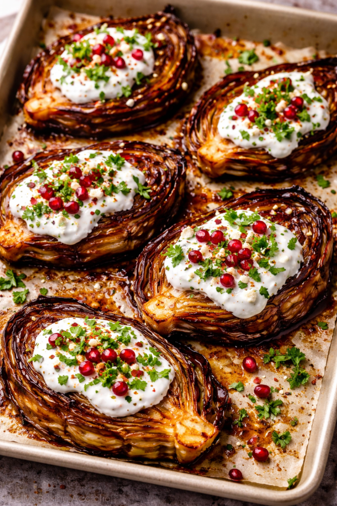 Balsamic Roasted Cabbage Steaks With Yogurt Sauce