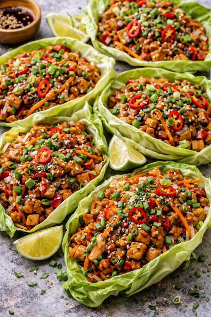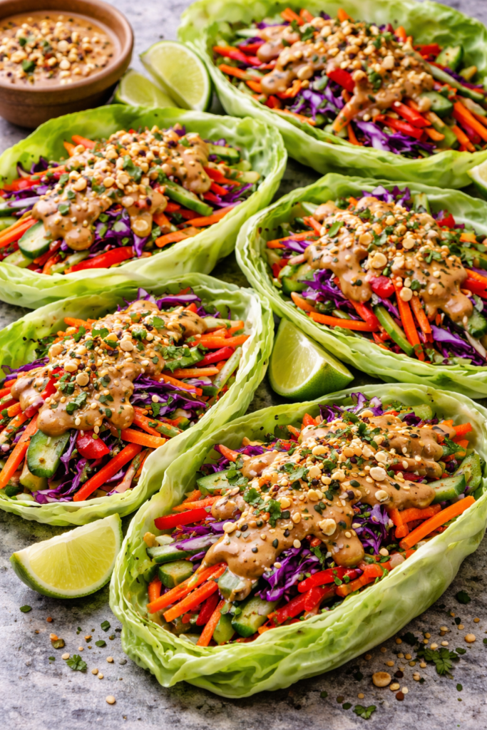 Fill them with chopped chicken, shredded carrots, herbs, and a sesame-style sauce for wraps that feel fresh, flavorful, and easy to prep.