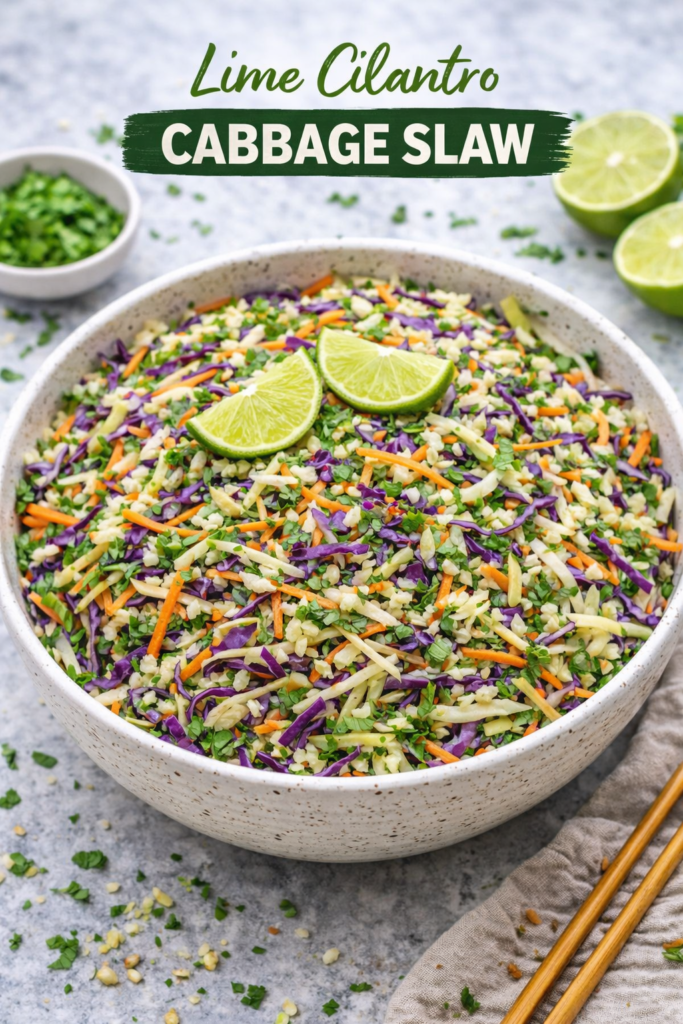 For tacos, bowls, and quick weeknight dinners, lime cilantro cabbage slaw is one of the best versions to keep in rotation.